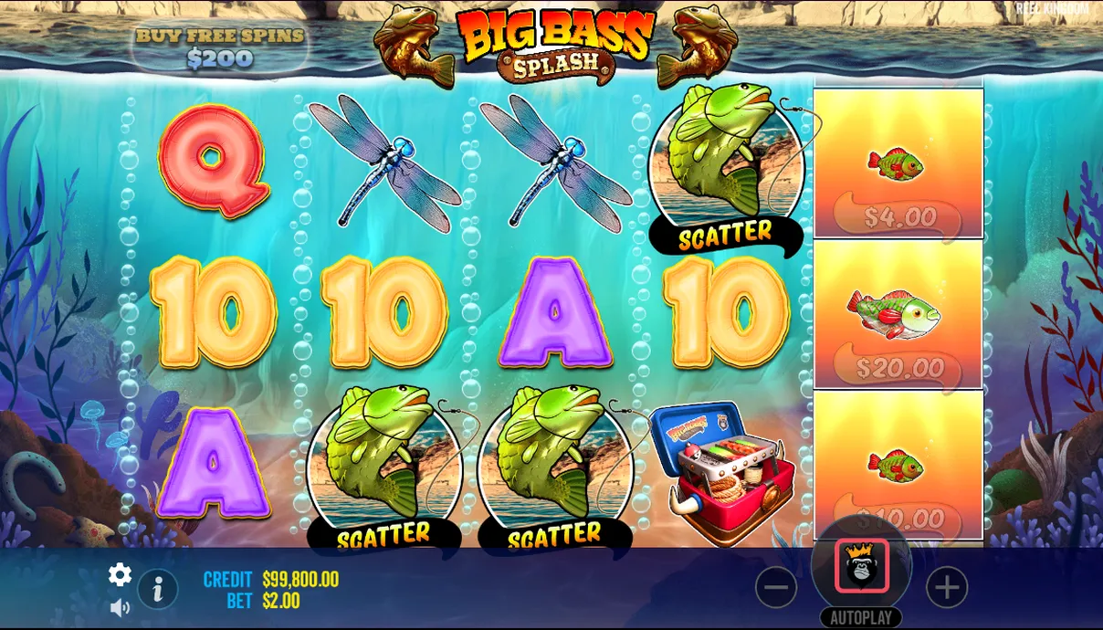 Drawing on our experience, the rules of Big Bass Splash Pragmatic Play are typical for any slot machine. Players must manage their bankroll wisely, while the slot itself handles the payouts.